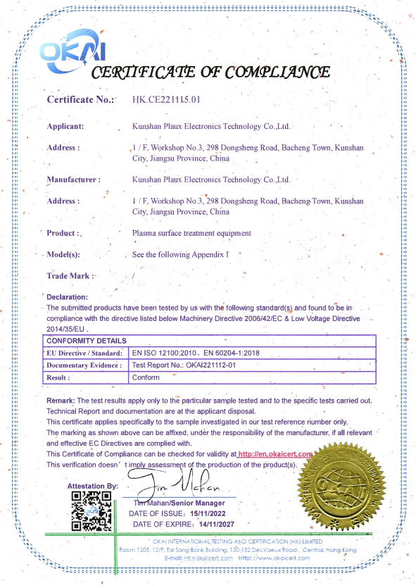 昆山哔咔漫画官网版下载位於江蘇省蘇州市昆山市,其全稱為昆山哔咔漫画官网版下载電子科技有限公司,是一家專注於提供哔咔漫画APP下载免费表麵處理方案的高新企業。昆山哔咔漫画官网版下载此次通過CE認證顯示了對其哔咔漫画APP下载免费表麵處理設備的質量把控,同時也推進了產品外銷的新方向、新路徑。